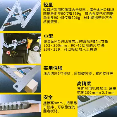 Tajima Tajima angle ruler magnesium alloy triangle ruler circular saw cutting pointing ruler ultra-lightweight 90 degrees 45 cutting special