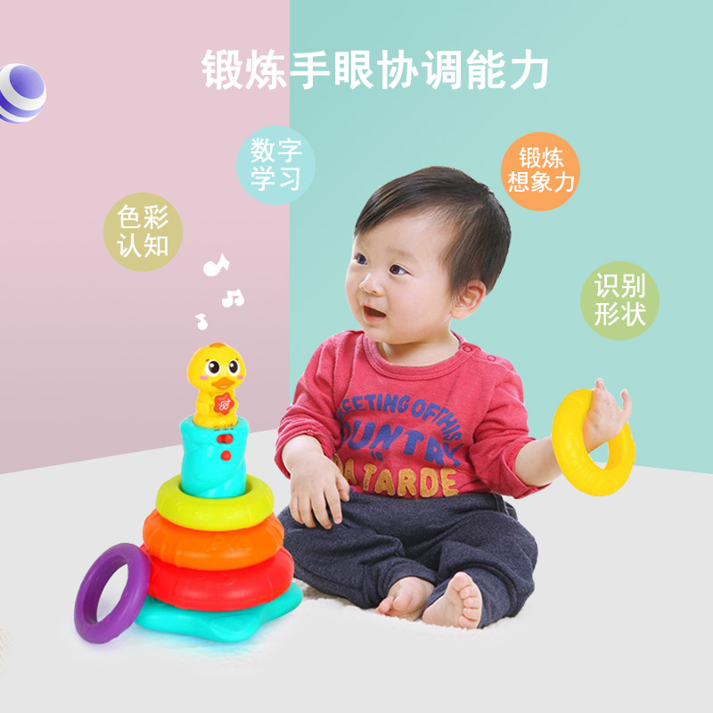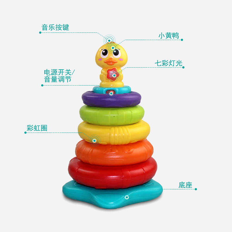 Rainbow stacking duck 1 free battery Rainbow stacking duck puzzle stacking cup without music Rainbow stacking duck Puzzle stacking cup with music Rainbow stacking duck Touch music tumbler Pink calf