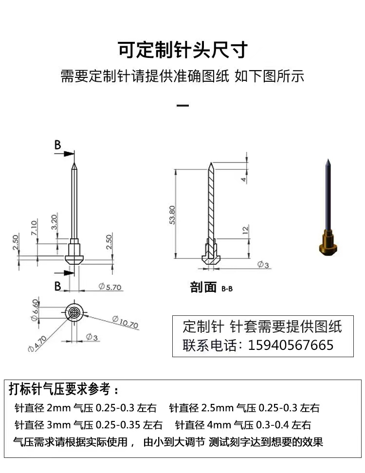 Pneumatic punching needle tungsten steel alloy needle internal thread pneumatic engraving machine needle Wuhan scoring machine needle