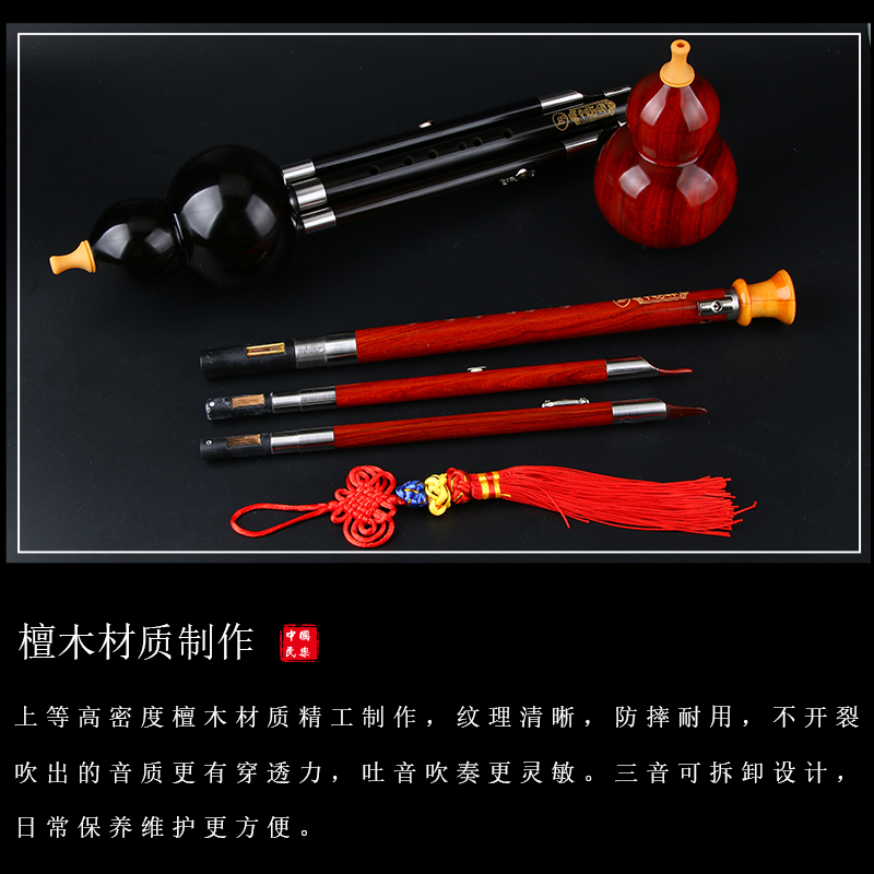 Red sandalwood Black sandalwood Gourd silk Professional performance type stage musical instrument Beginner c tune down b tune Adult self-study examination