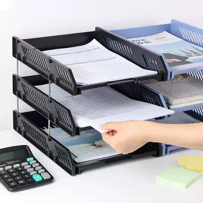 Qixin B2060 file holder Three-layer file tray horizontal file frame File finishing data storage layer rack Storage file basket Multi-layer black file rack Folder storage box Office supplies
