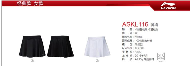 Li Ning 2016 Summer autumn new AT Dry moisture absorption perspiration badminton women's dress ASKL116