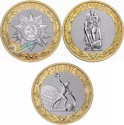 Set of 3 Russian World War II Victory 70th Anniversary coins 10 rubles