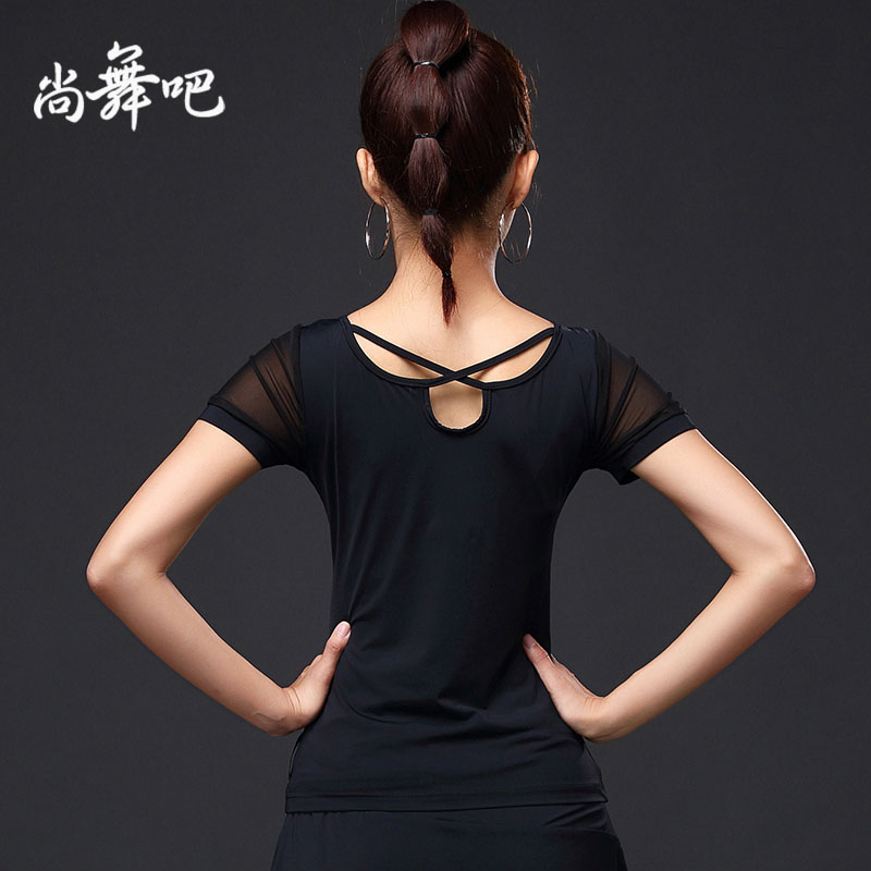 Shang dance bar dance Latin dance clothing Female adult top short sleeve mesh practice suit Square modern dance top