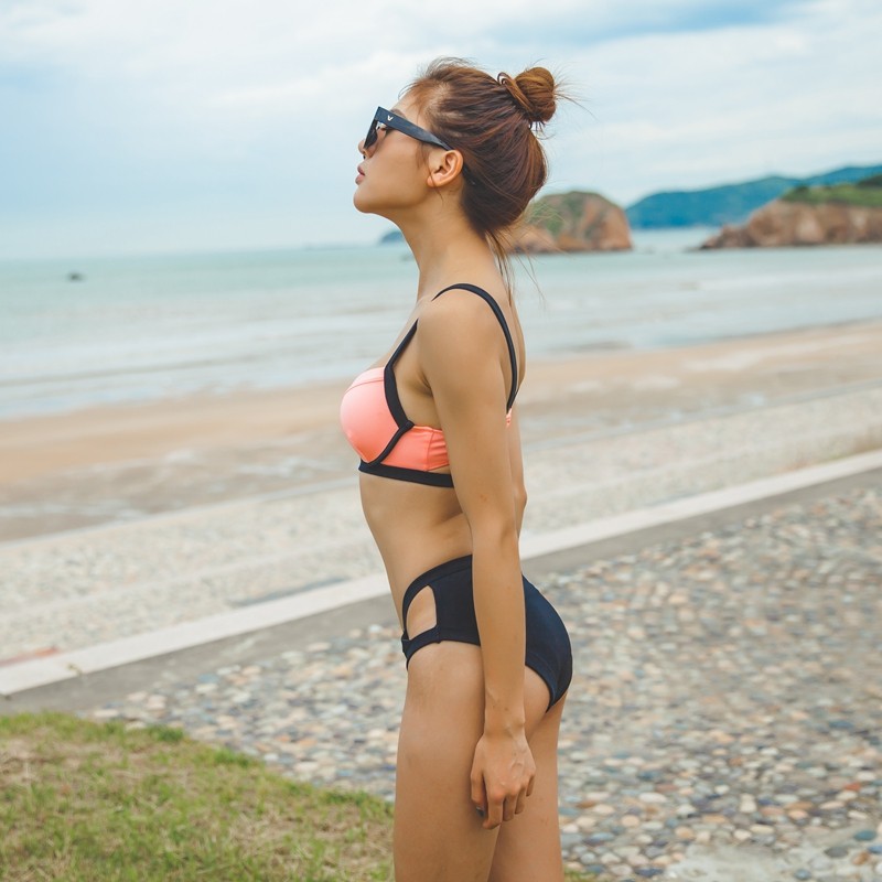 Double shoulder strap steel strap sports bikini Fluorescent big Chest spa Swimsuit Vacation gathered two-piece sexy swimsuit diving