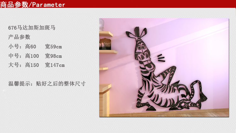 Cartoon Sticker Wall Sticker 3D Solid creative zebra sticker Painted Bedroom Wall Arrangement Children Room Wall Deco