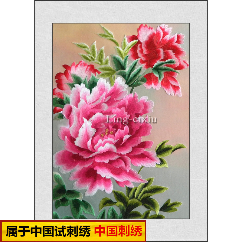 Suzhou embroidery Suzhou embroidery finished hanging painting living room decorative painting wedding gifts silk peony flowers bloom rich flowers