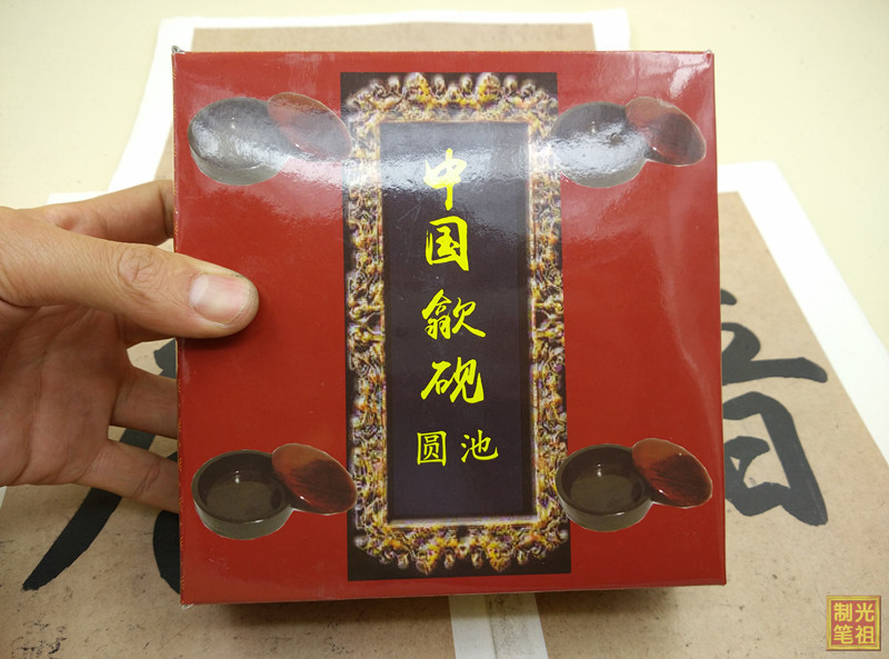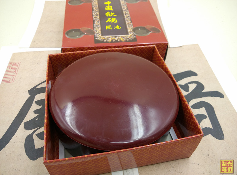 Guangzutang with cover inkstone antique six inches 6 Anhui Shezhou inkstone student adult calligraphy round stone study