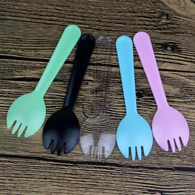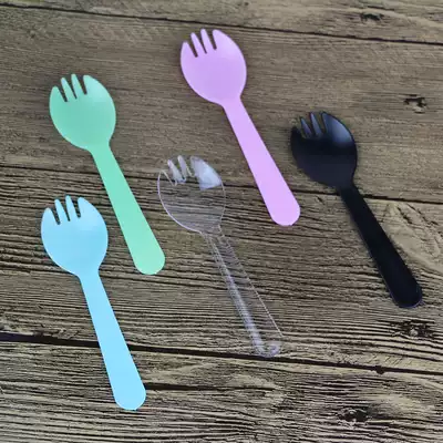 Disposable plastic fork spoon frosted three-tooth fork spoon cake fork spoon 100 full 500