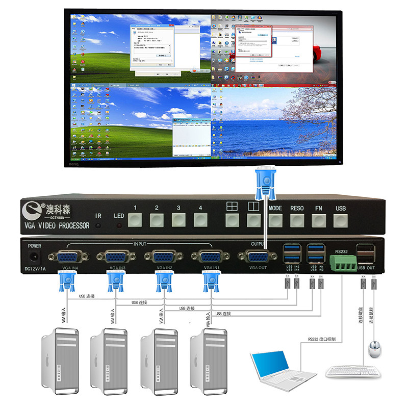 VGA4 four-picture divider industrial ccd camera 4 in 1 out of split screen PC computer splicing synthesizer