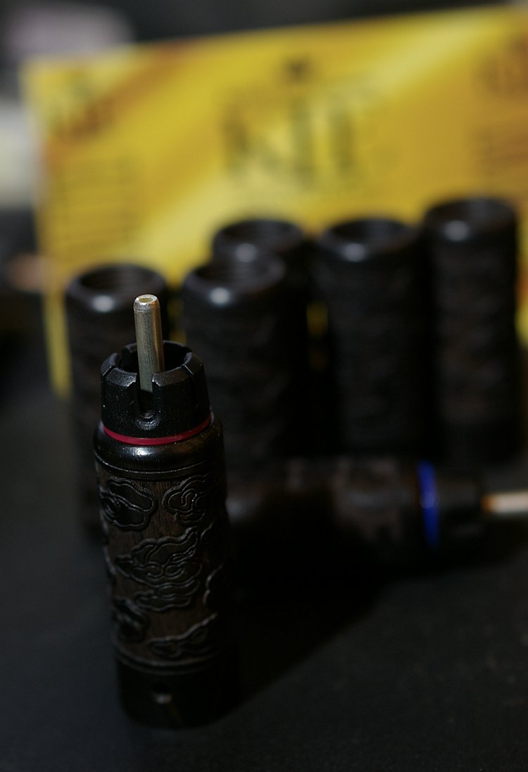 Nylon (12mm) one blood sandalwood (11mm) one ebony (11mm) one nylon (14mm) one