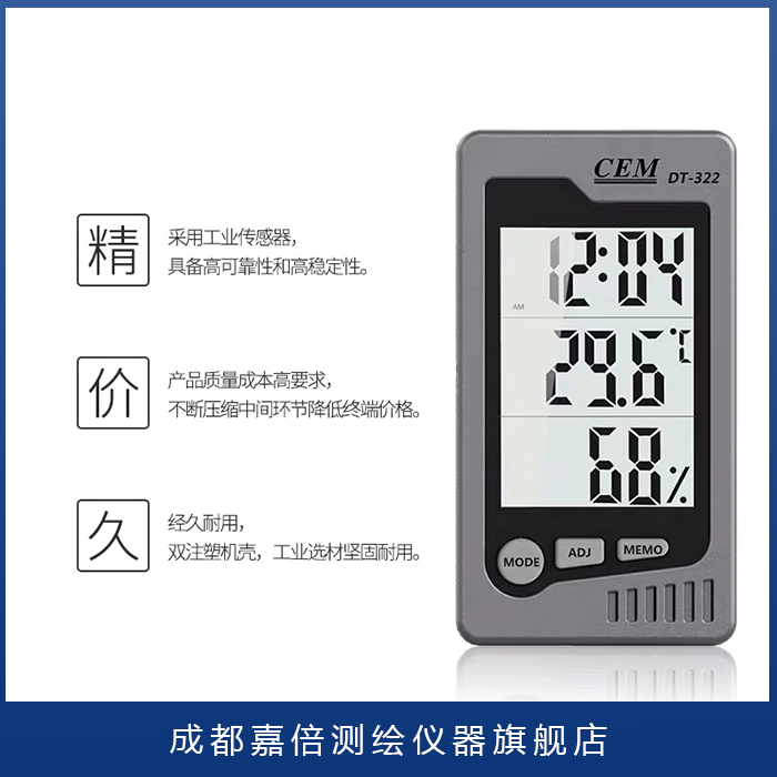 CEM Changchang DT-322 Home Electronic Dry Wet Humitometer Indoor Multifunction Baby Room Humitometer