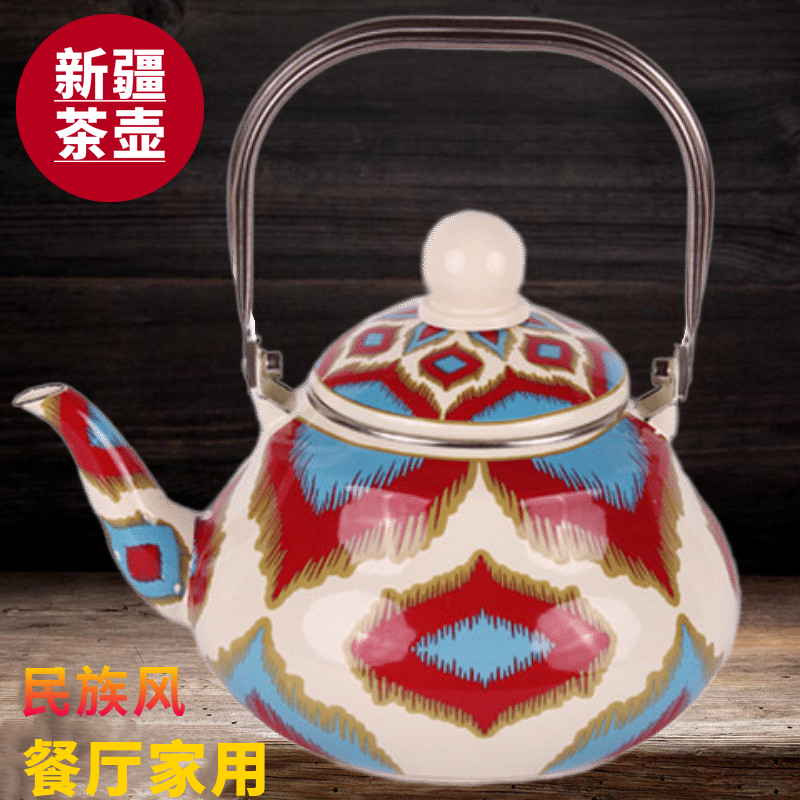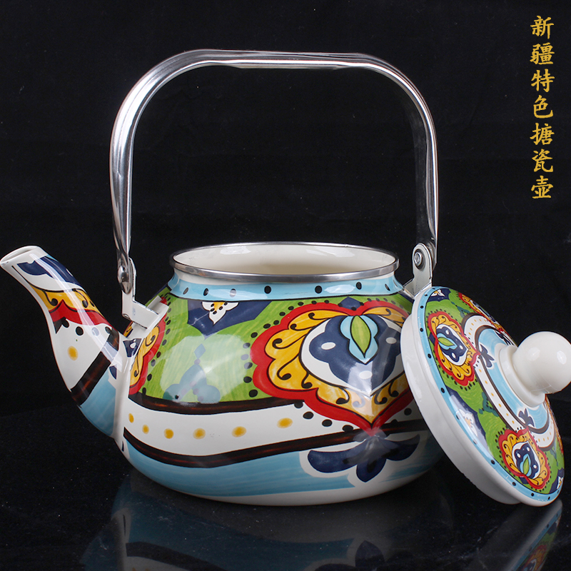 Xinjiang characteristic hotel hand-painted enamel pot hotel milk tea pot tea set can hold water 1 5L
