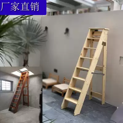 Solid Wood loft staircase herringbone ladder six seven eight steps thickened household indoor storage wooden ladder folding wooden ladder stool