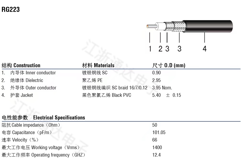 RG223 radio frequency coaxial copper silver plated double silver wire feeder double screen blind 50-3 0-12G high frequency wire high temperature resistant