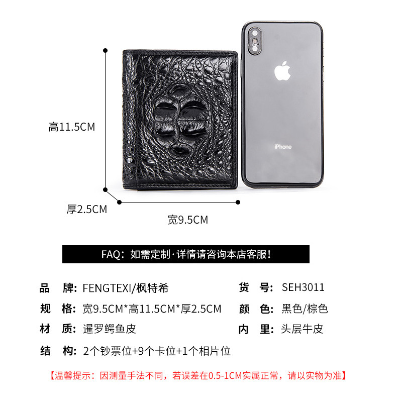 Fenthi Thailand without splicing Siam crocodile wallet for men's wallet short leather thicker wallet tide