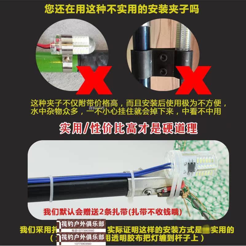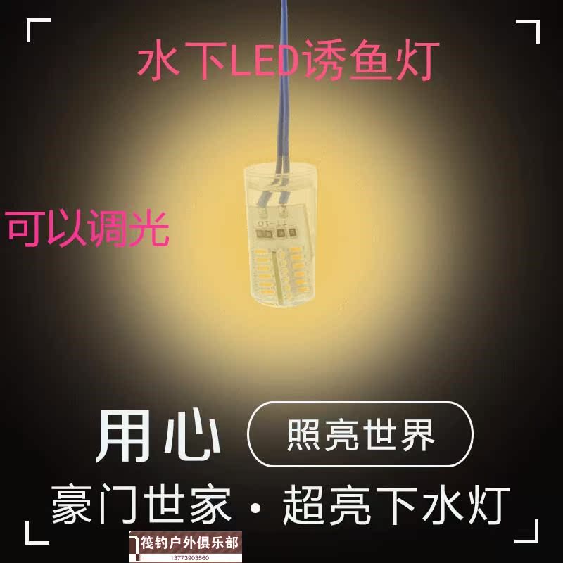 Underwater raft fishing light 12V LED10W warm yellow night fishing trap gathering fishing lamp net head lamp dimmer