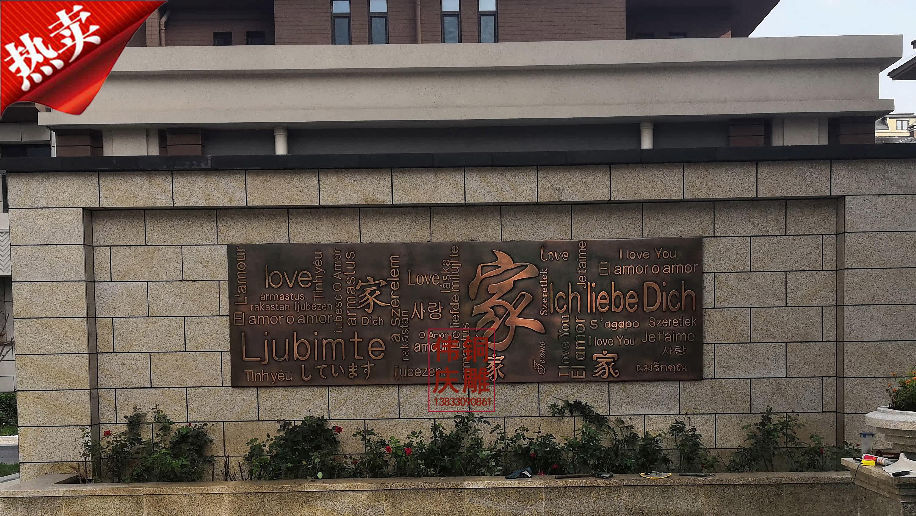 Forged copper relief villa door sculpture pattern Copper door inlaid copper plate door flower hand-made pure copper decorative hanging painting