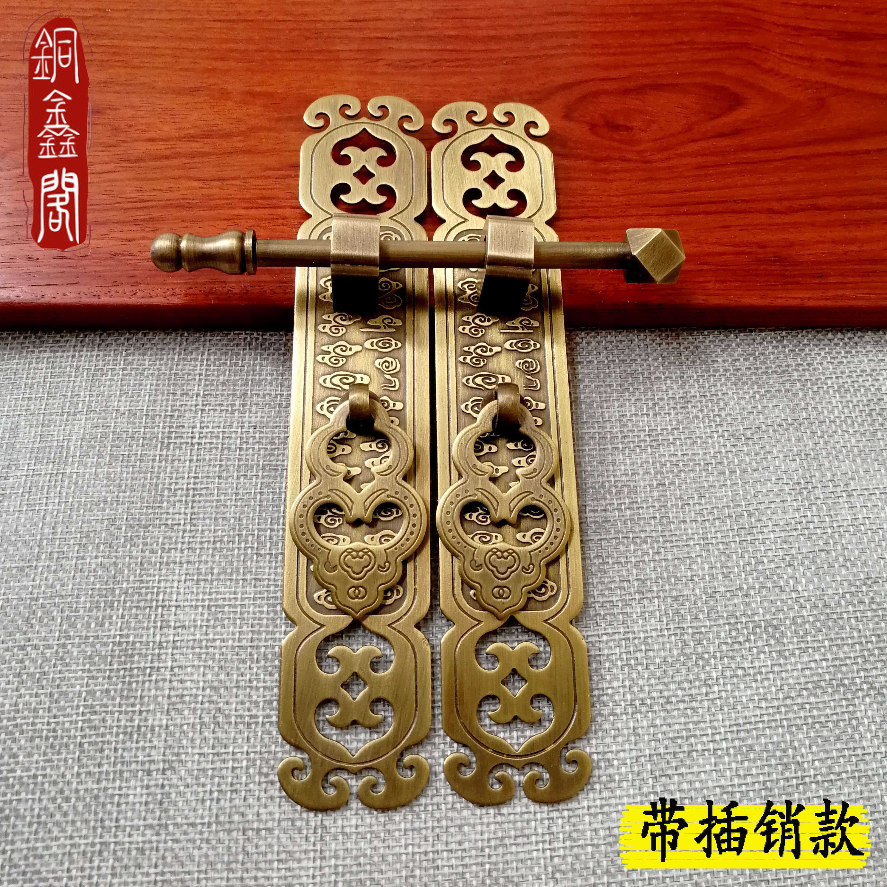 Xiangyun Chinese style hollow cabinet door handle pure brass wardrobe door copper handle vertical all copper handle antique