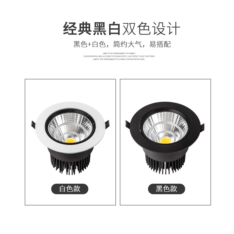 Spotlight LED Ceiling Light Embedded Cob Spotlight Clothing Store Black Downlight Background Wall Suspended Ceiling Bull Eye Light