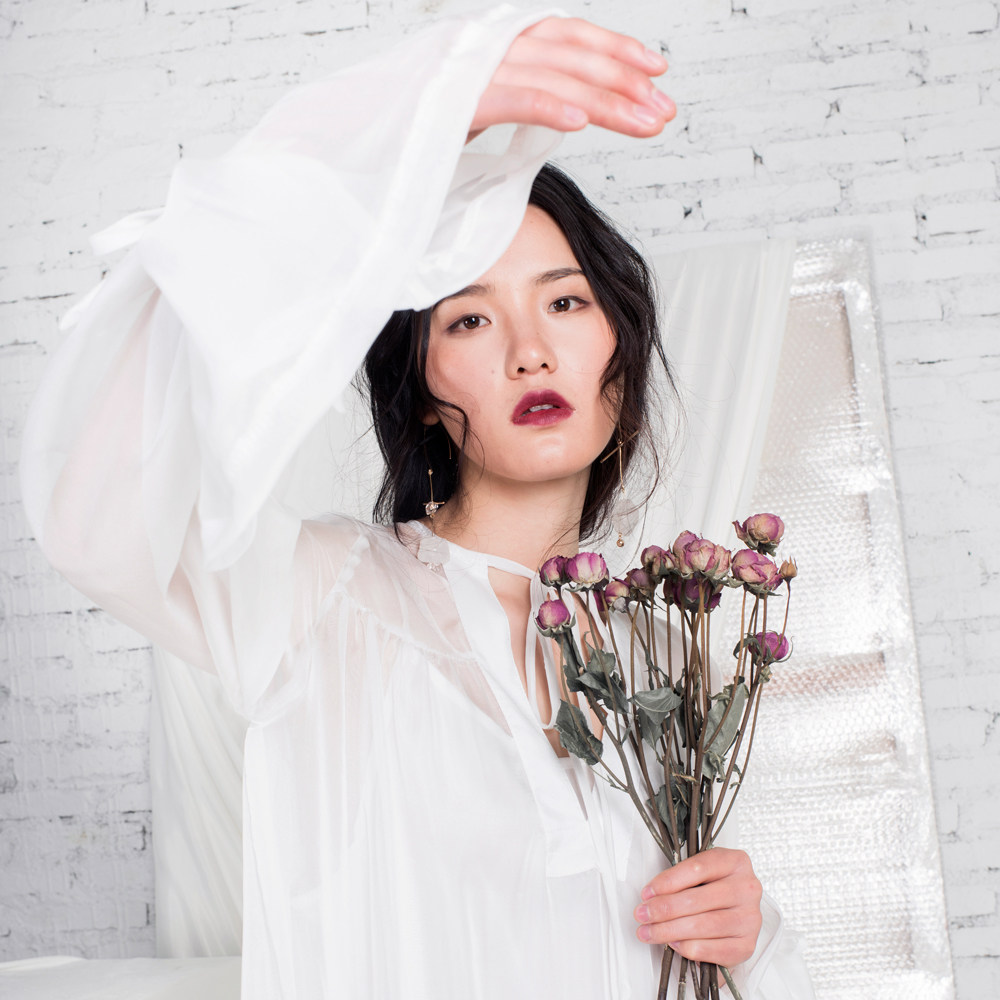 TUYUE coated moon original gown dress with white perspective V collar two-piece irregular skirt hem skirt