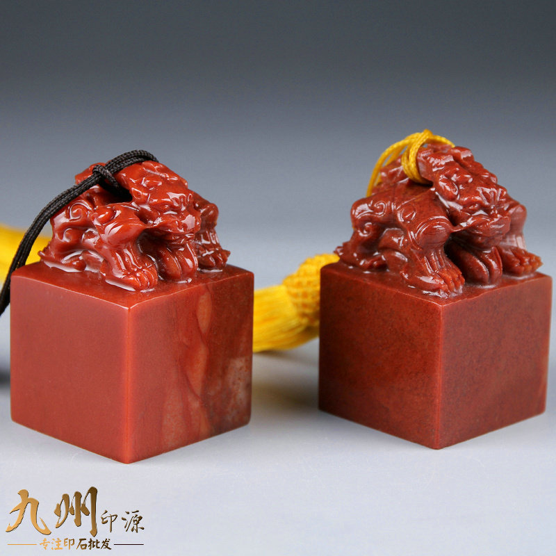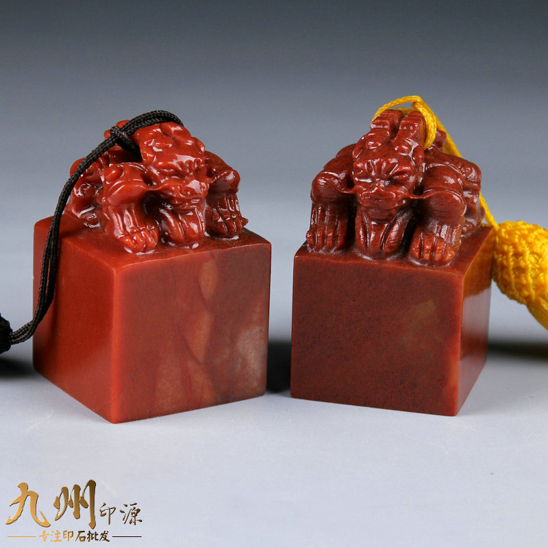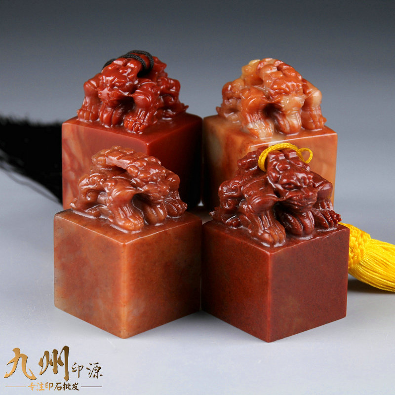 Seal Stone Gold Stone Seal Carved Stone Beginner Natural Stone Calligraphy Seal Shoushan Stone Zhejiang Red Double-Headed Beast