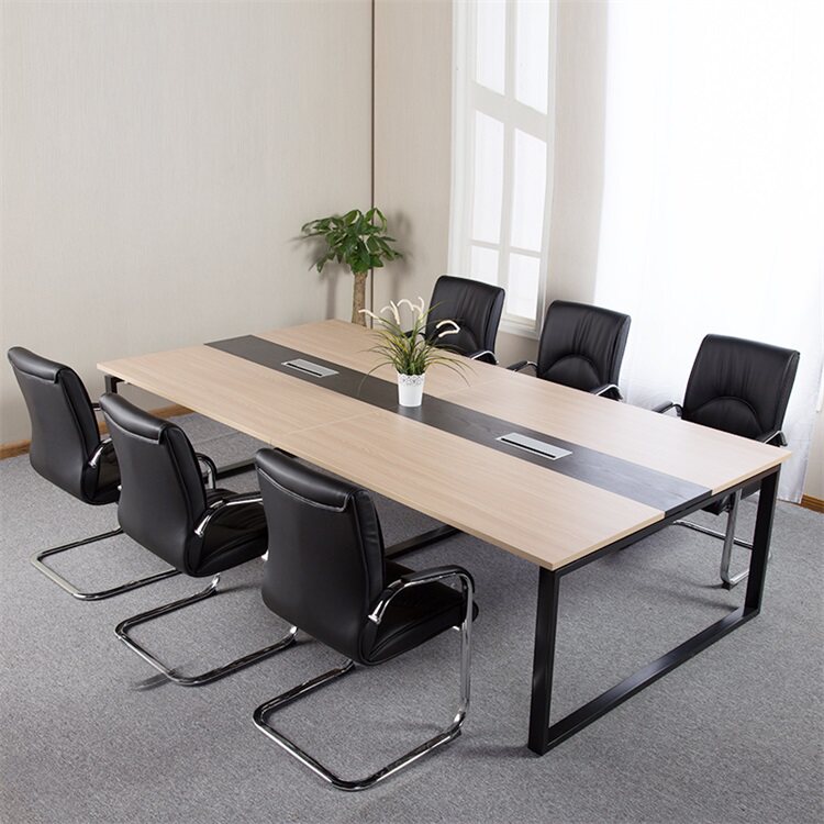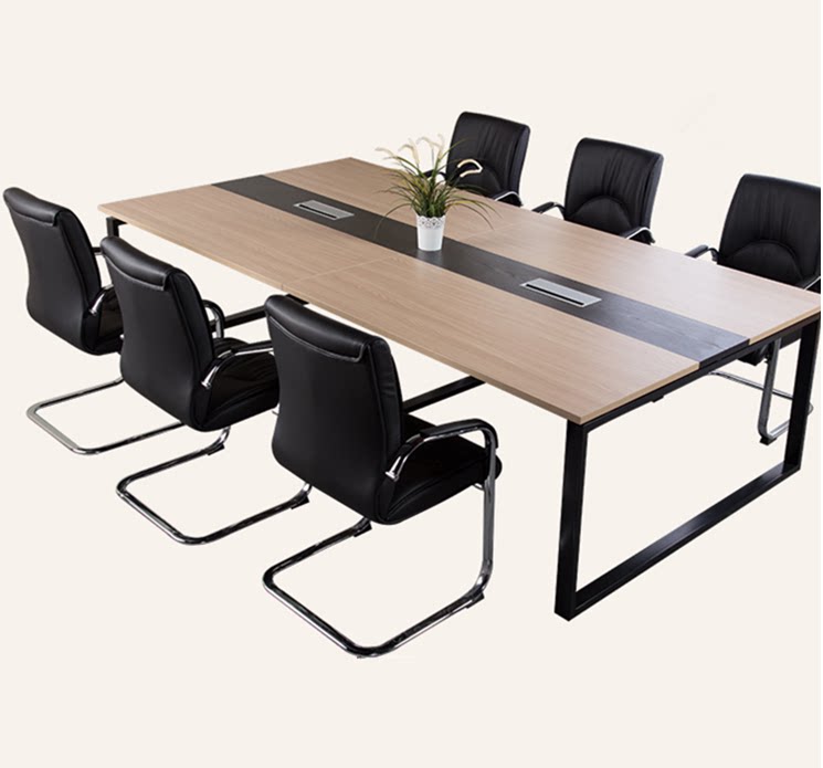 Rectangular negotiation table, desk furniture, atmospheric conference table, steel and wood, large conference tables and chairs, modern simplicity