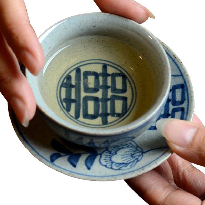 Jingdezhen's old porcelain imitation ancient green flower coarse pottery hand-painted tea cup master's cup Kung fu tea furniture