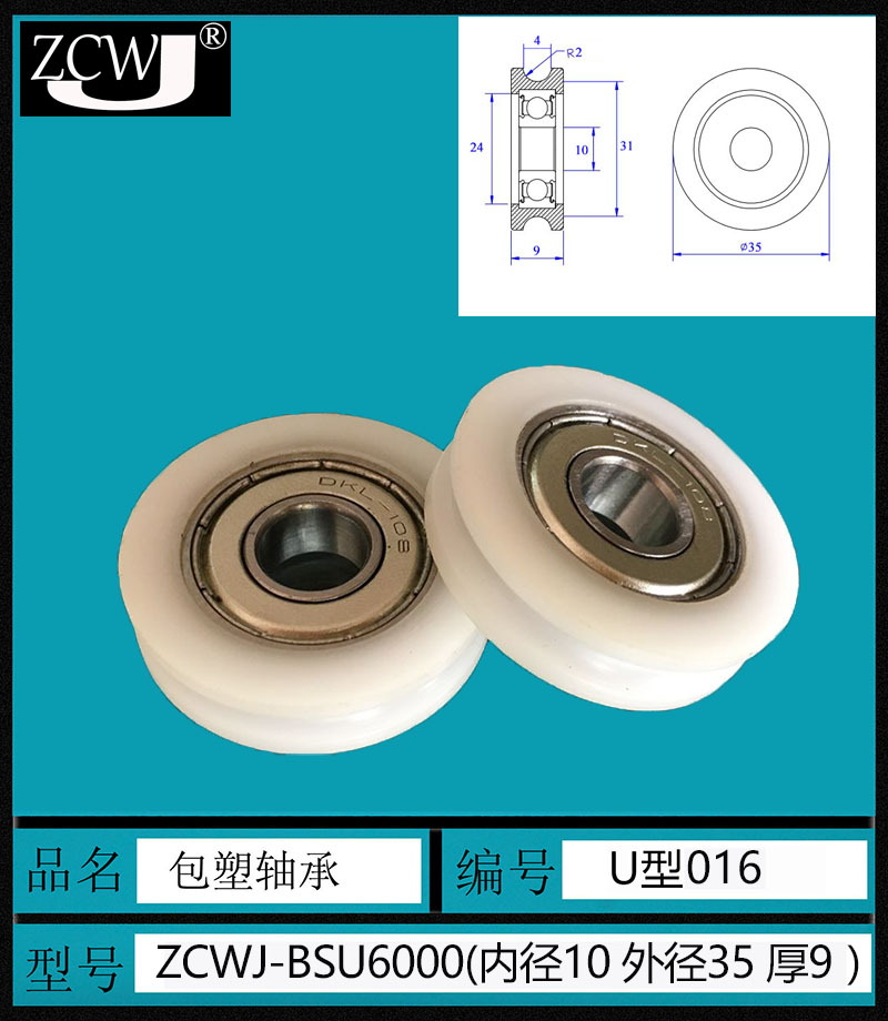U groove wheel POM nylon plastic-coated plastic-coated bearing wheel inner diameter 10*35*9mm groove pulley small pulley direct sales