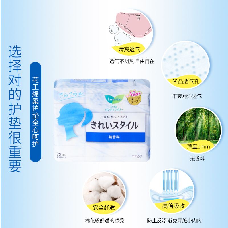 Japan imported Kao Le erya sanitary pad skin-friendly cotton soft breathable fragrance-free fragrance-free fluorescent agent 14cm72 tablets