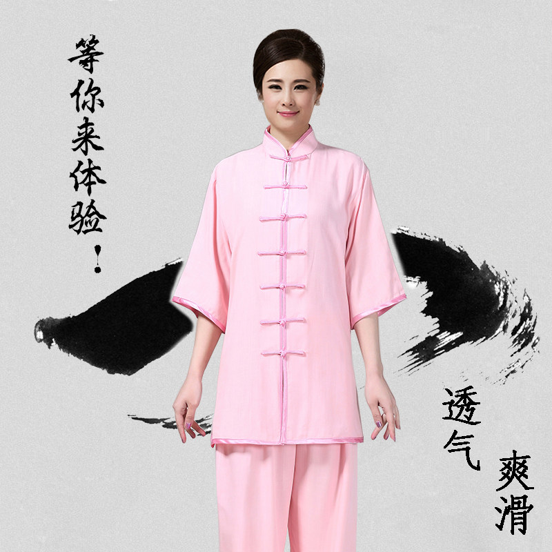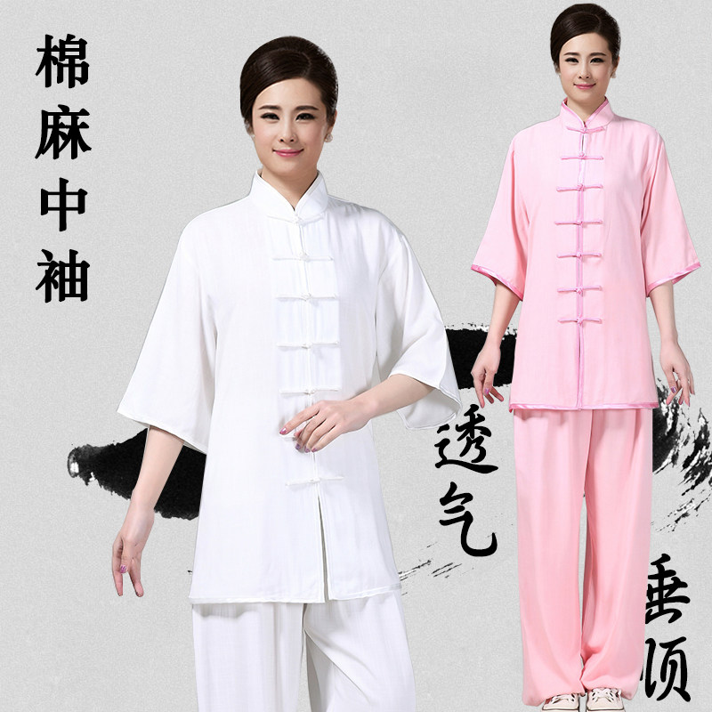 Summer tai chi suits for men and women cotton and linen mid-sleeve tai chi suits cotton and linen linen exercise suits for middle-aged and elderly people morning exercise
