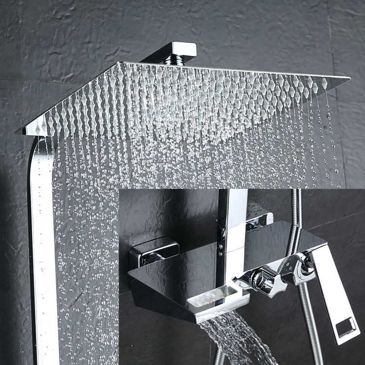 German Shower Shower Kit Shower FULL COPPER BATH TAP WATERFALL WATER OUT ULTRA-THIN SQUARE BOOSTER SHOWER
