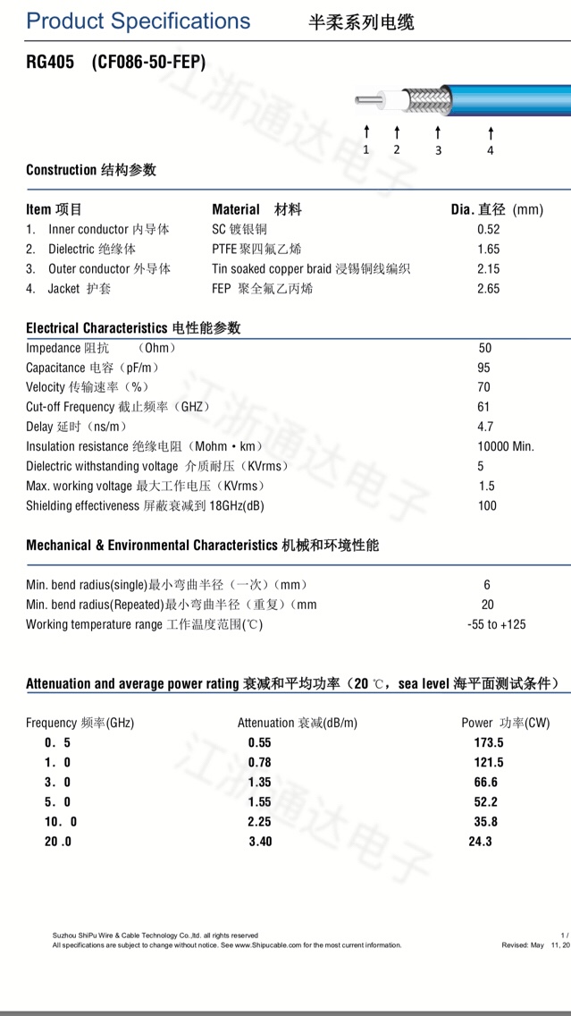 RG405 RG086 Copper silver-plated double silver wire Semi-flexible wire 50-2 RF coaxial wire 50 ohms high temperature resistance