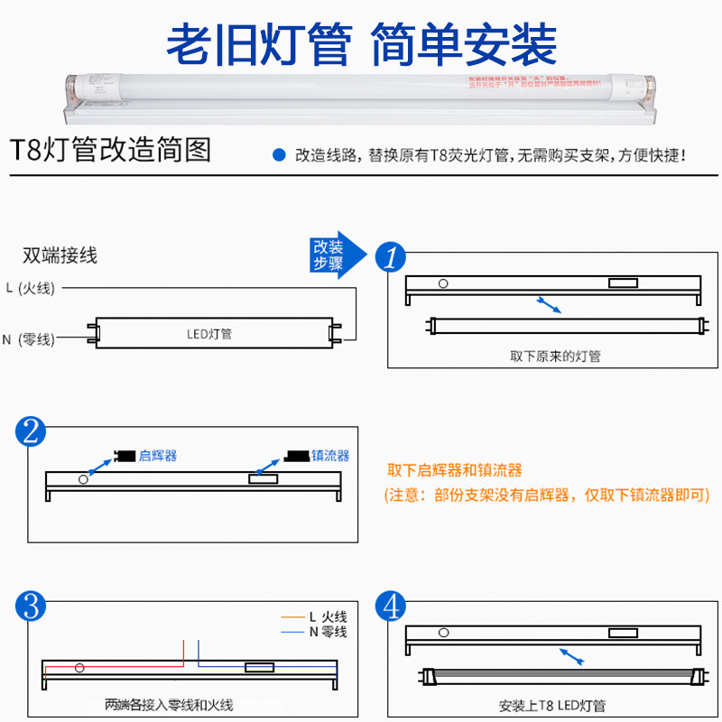 OPU t8LED lamp double-ended 220-03 transformation 19W ultra-bright fluorescent lamp 24W daylight bracket 0 6 meters 1 2