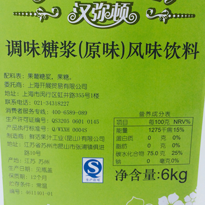 Hamilton flavored syrup original flavor beverage coffee syrup fructose coffee milk tea raw material 6kg