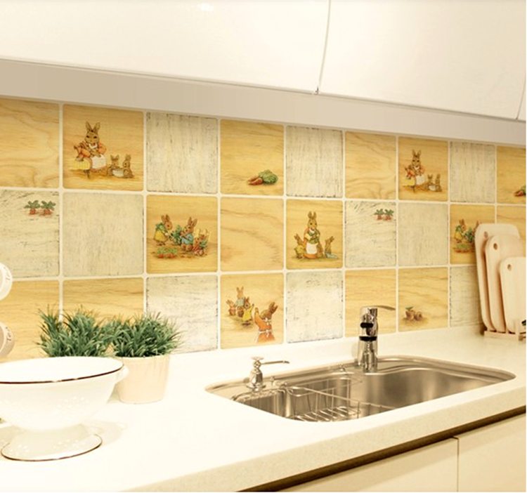 Korea imported anti-oil stickers Pastoral Rabbit self-adhesive anti-oil kitchen stickers Aluminum foil fireproof high temperature wall stickers Tile stickers