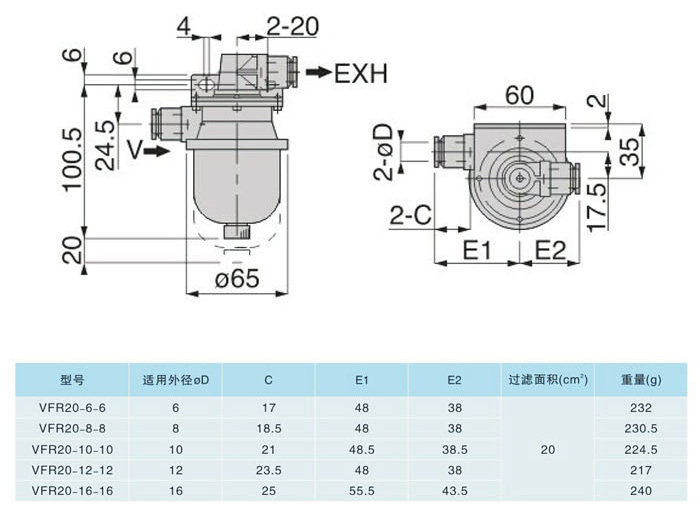 Vacuum filter PISCO type filter VFR20-06-06 08-08 10-10 12-12MM spot