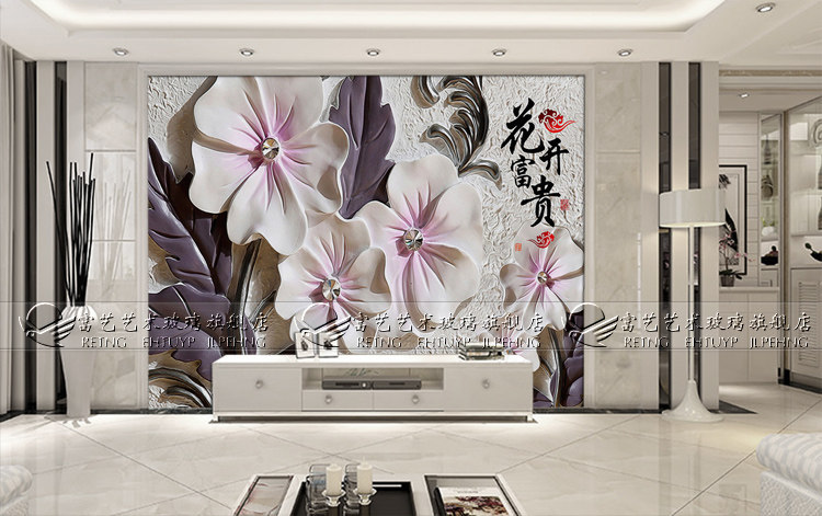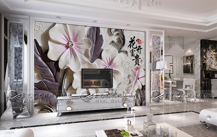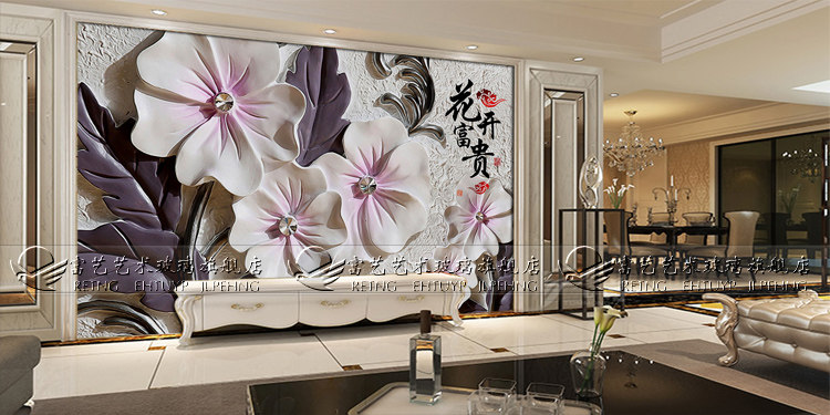 Art Glass 3D Stereosensation Engraving TV Background Wall Screen Deep Engraving Embossed Spray Paint Flowers Open Rich