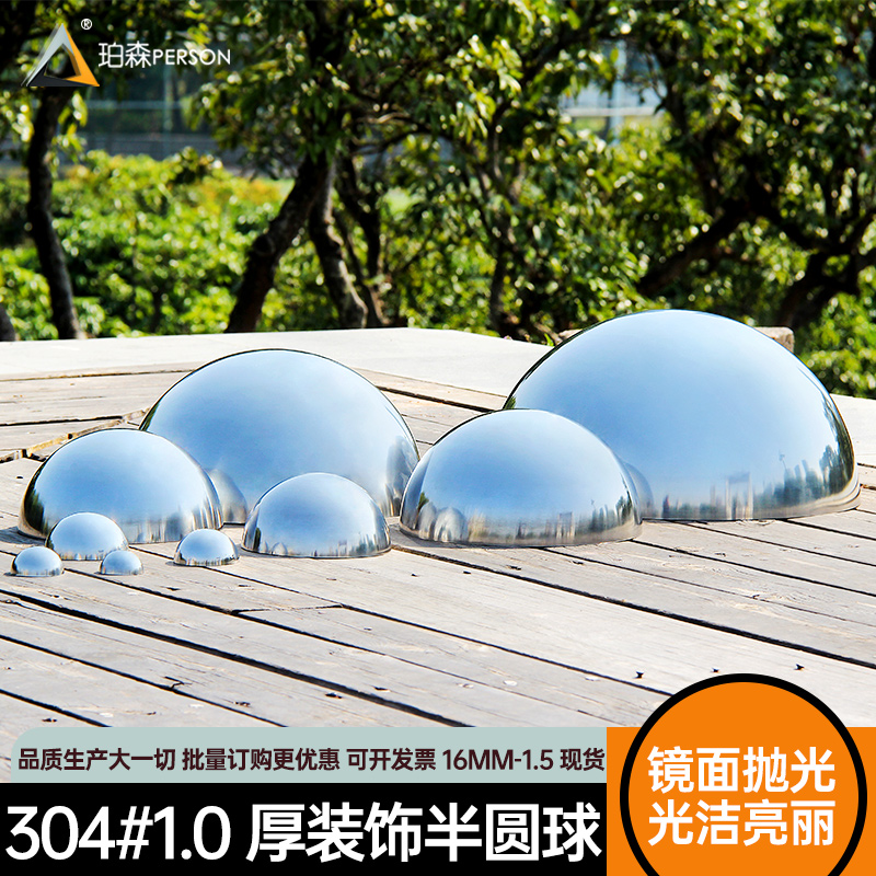 304 stainless steel semi-circle ball sealing head thickened metal hollow decoration 304 seal head semi-circle ball mirror bright light round ball