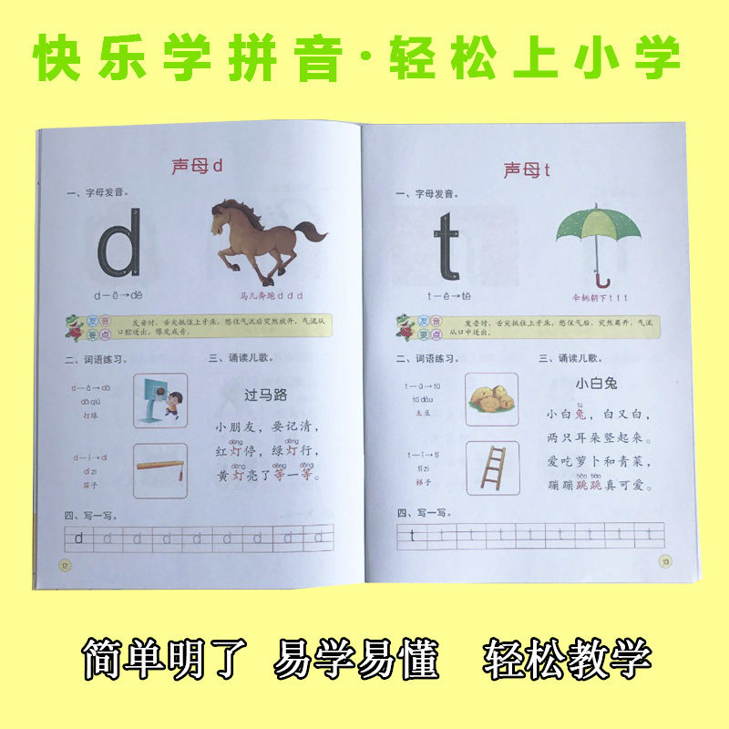 Happy learning pinyin kindergarten aoe initials vowels look at the picture to learn pinyin books children's school preparation pinyin textbooks