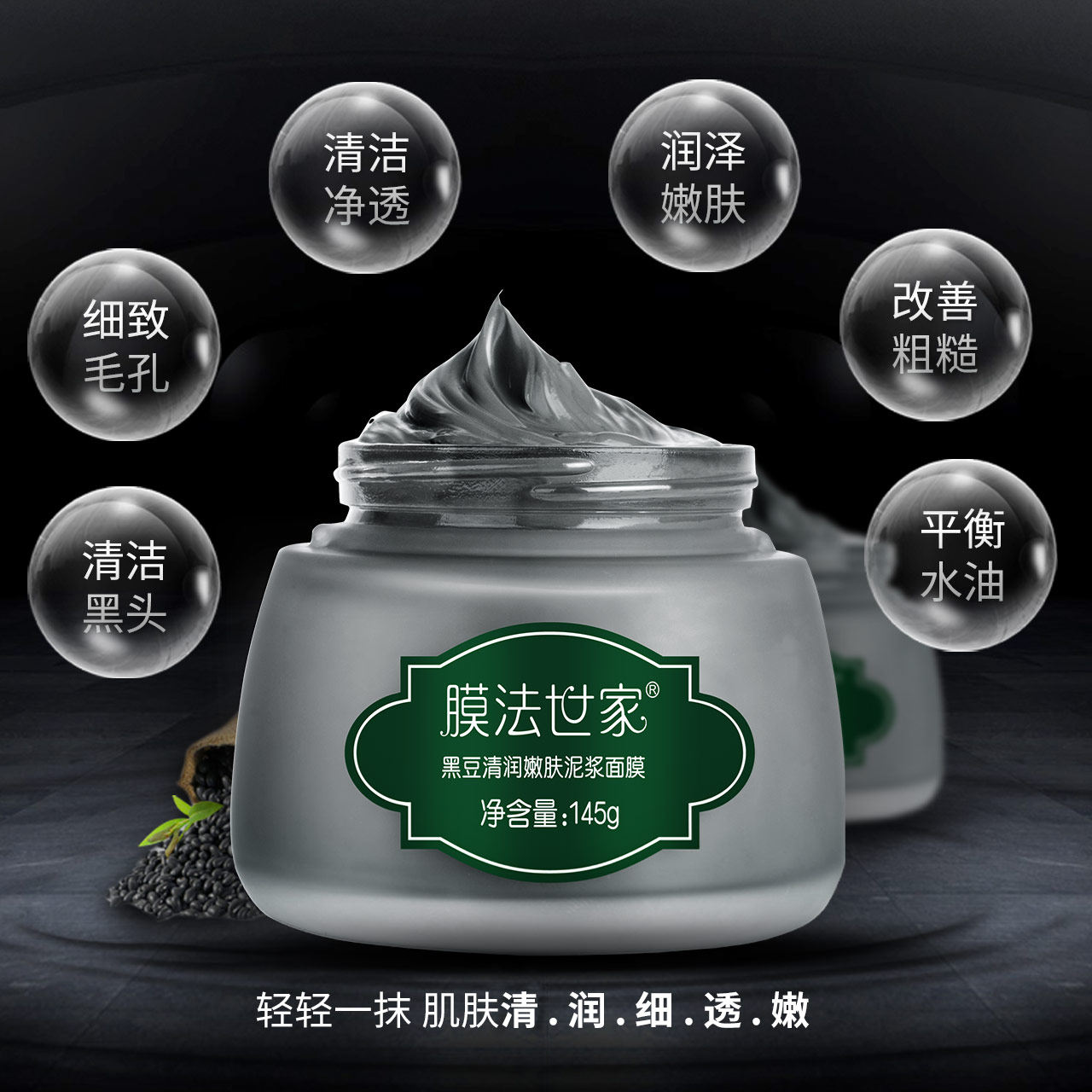 Membrane Family Green Black Bean Mud Mask Deep Cleans Pores, Oil Control, Acne and Blackhead Demon Official Flagship Store