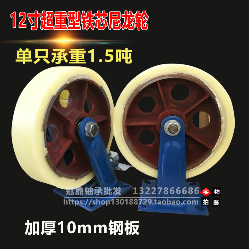 Supply 6 inch 8 inch 10 inch 12 inch super heavy duty nylon wheel universal wheel caster iron core wheel Single load 1 ton