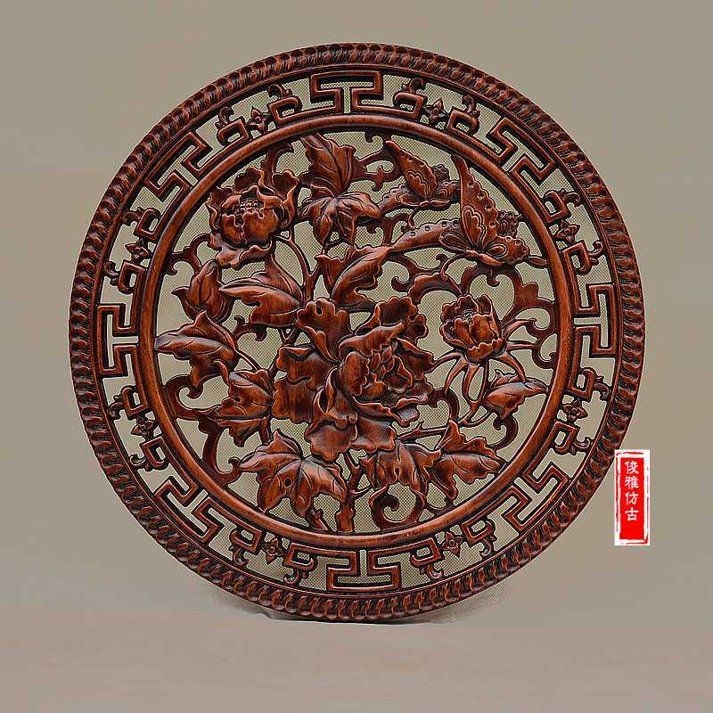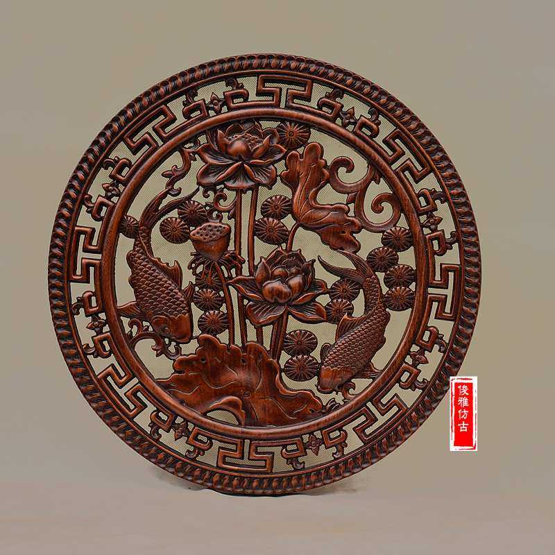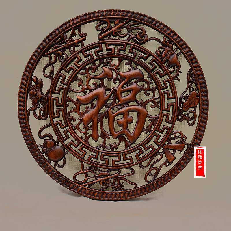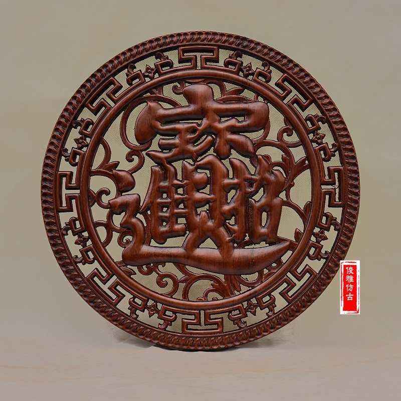 Dongyang wood carving pendant phoenix unicorn round living room porch Chinese style solid wood dragon and phoenix Chengxiang antique hollow wall hanging - Taobao