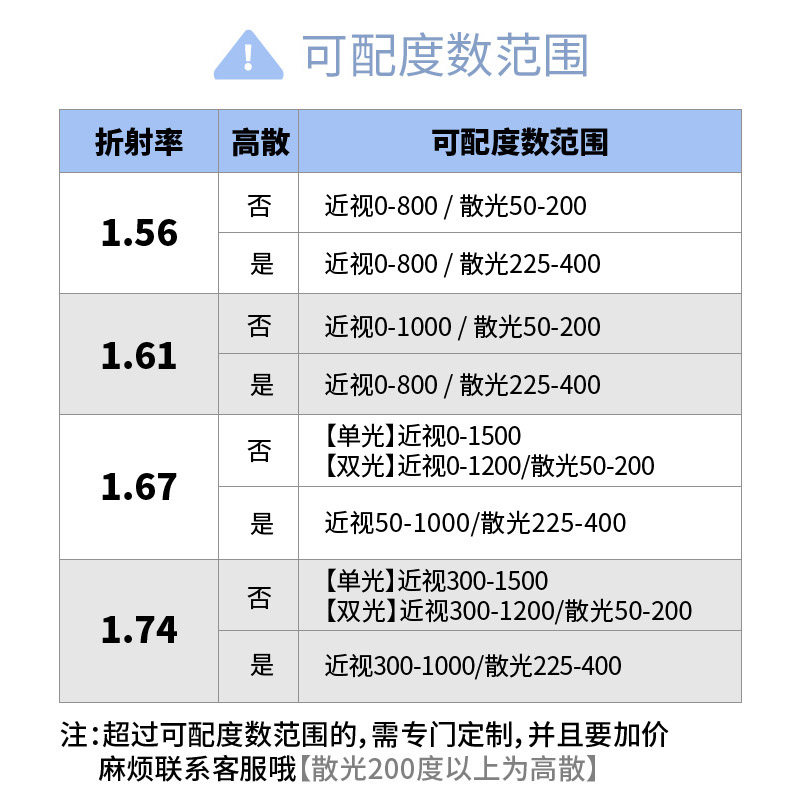 The lenses are suitable for the degree: