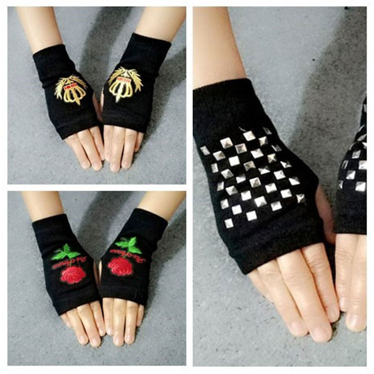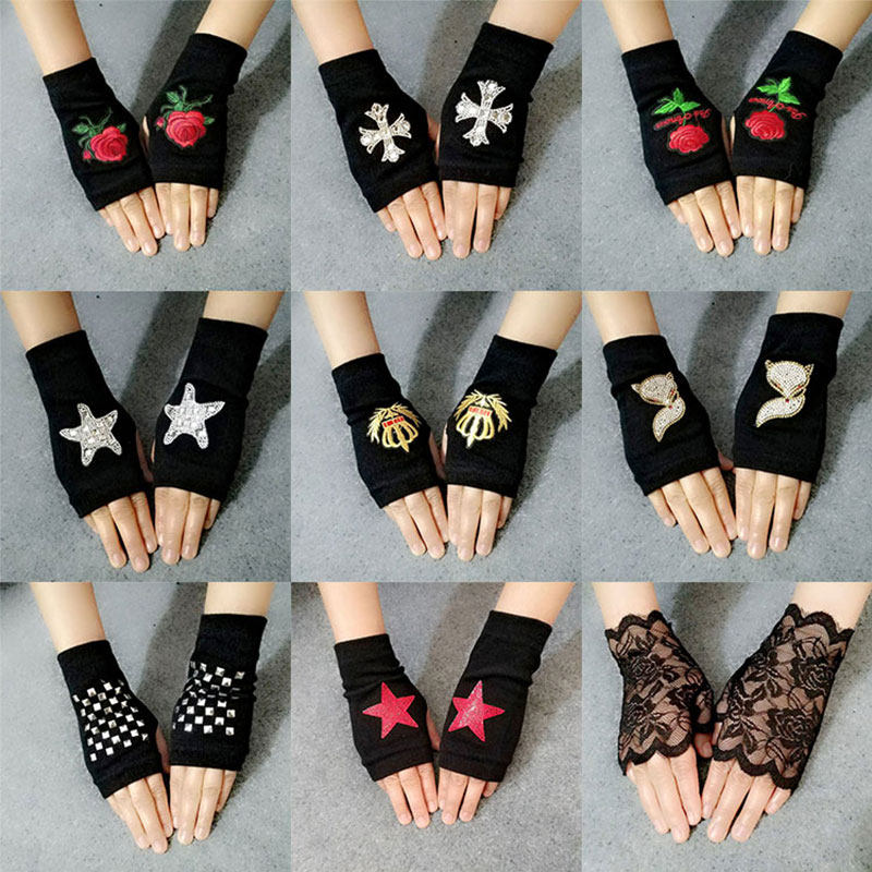 New Non-Mainstream Rivet Control Short Gloves Dance Outdoor General Black Lace Sun Gloves