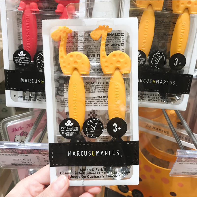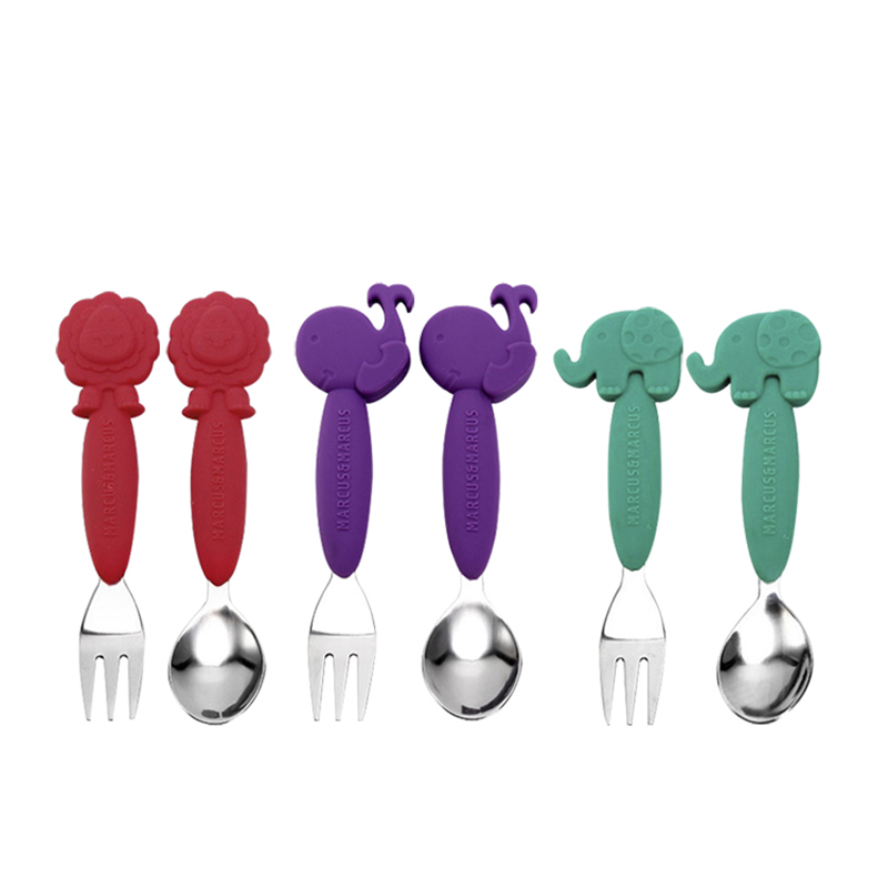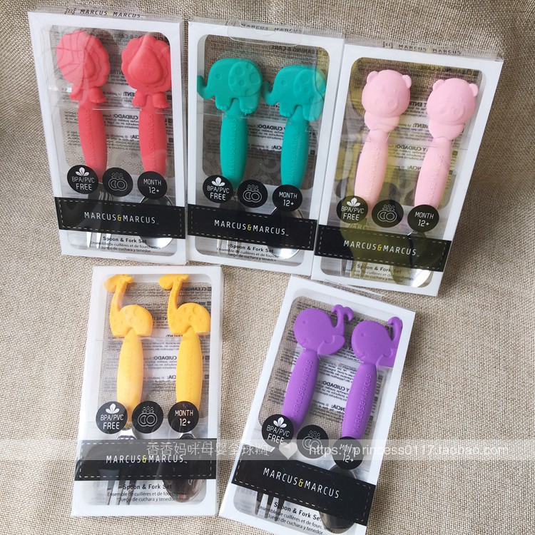 Canadian MARCUS infant silicone fork spoon set children cartoon zoo stainless steel food spoon spoon