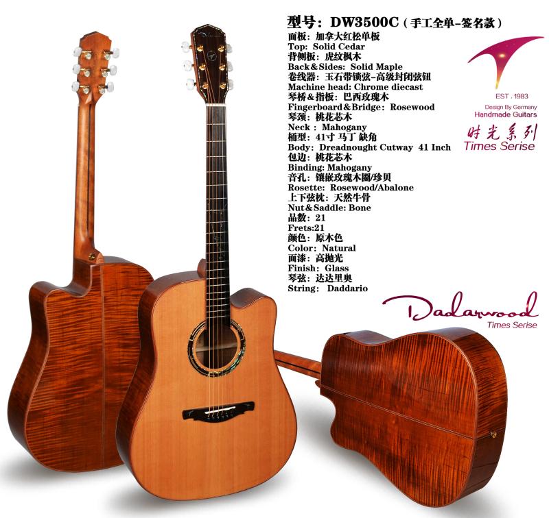 Dadarwood Dadavao DW3500C handmade hornless red pine gold silk tiger pattern all-single folk guitar