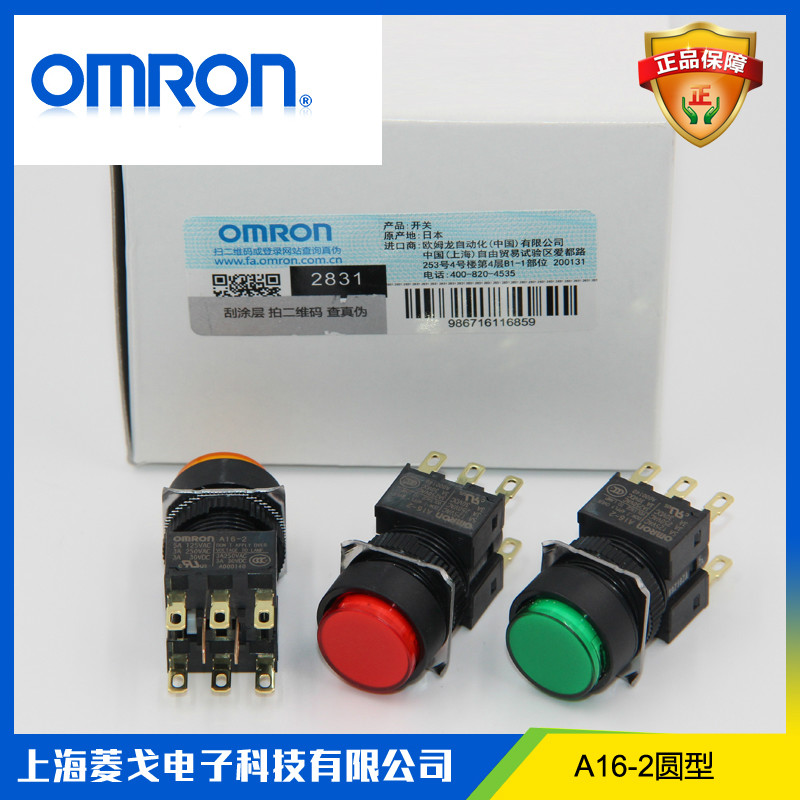 Original OMRONOMRON round push button switch A16-2 with lamp without lock A16L-TGM-24D-2