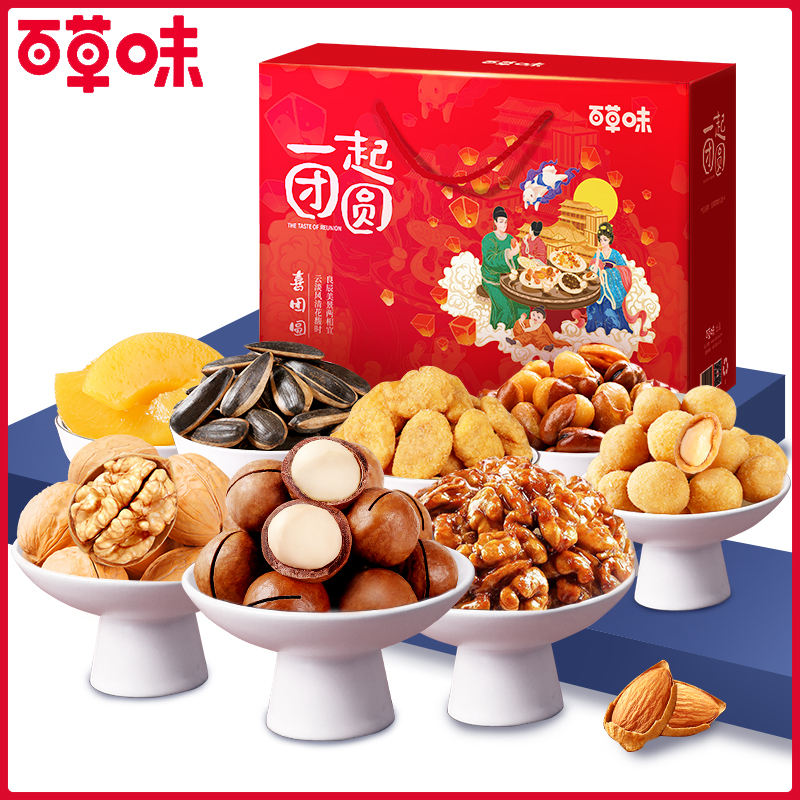 (Grass Flavor-Nut gift pack 1530g 8 bags) Daily nut mixed dried fruit snacks whole box gift box