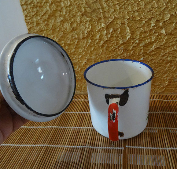 Cultural Revolution Enamel Cylinder Cup Red Double Happiness Brand Marriage and Beauty Means Times Memory Nostalgic Collection Props Physical Photos